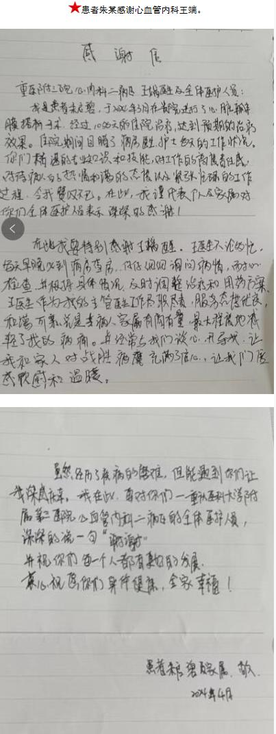 患者朱某的感谢信。-感谢信-患者心声-患者服务-重庆医科大学附属第三医院【官方网站】