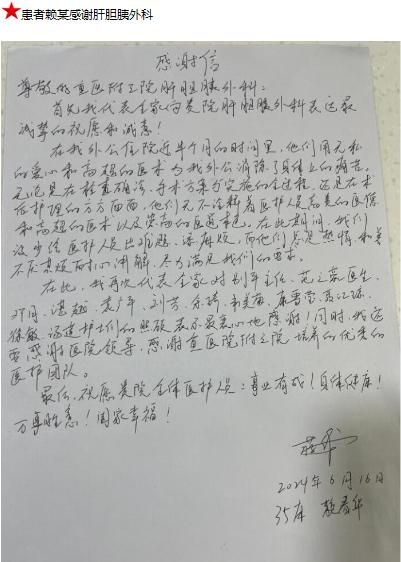 患者赖某的感谢信。-感谢信-患者心声-患者服务-重庆医科大学附属第三医院【官方网站】