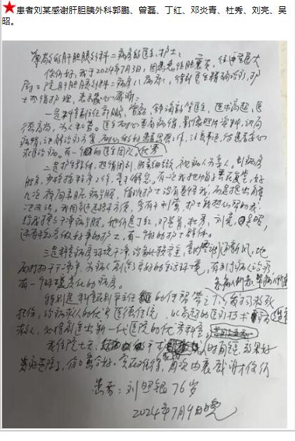 患者刘某的感谢信。-感谢信-患者心声-患者服务-重庆医科大学附属第三医院【官方网站】