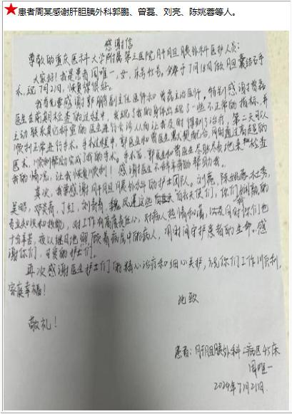 患者周某的感谢信。-感谢信-患者心声-患者服务-重庆医科大学附属第三医院【官方网站】