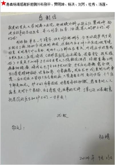 患者杨某的感谢信。-感谢信-患者心声-患者服务-重庆医科大学附属第三医院【官方网站】
