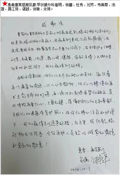 患者唐某的感谢信。-感谢信-患者心声-患者服务-重庆医科大学附属第三医院【官方网站】