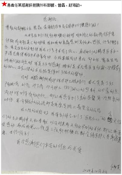 患者任某的感谢信。-感谢信-患者心声-患者服务-重庆医科大学附属第三医院【官方网站】