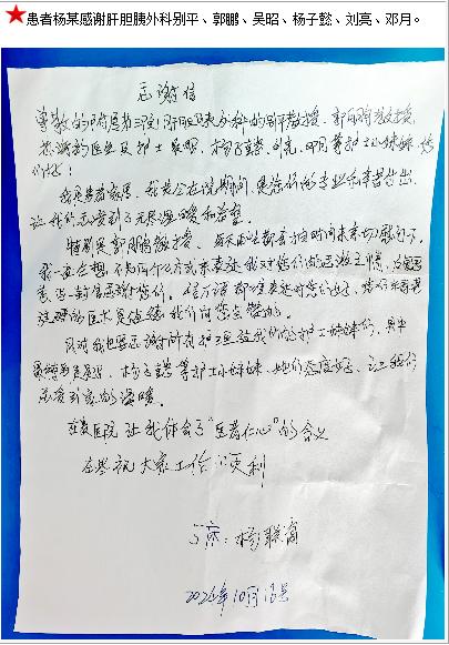 患者杨某的感谢信。-感谢信-患者心声-患者服务-重庆医科大学附属第三医院【官方网站】