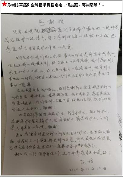 患者陈某的感谢信。