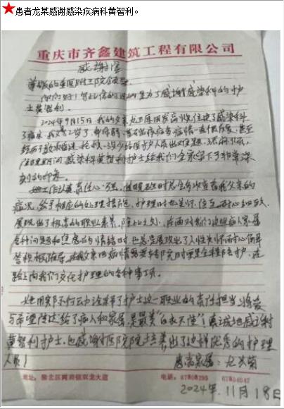 患者龙某的感谢信。-感谢信-患者心声-患者服务-重庆医科大学附属第三医院【官方网站】