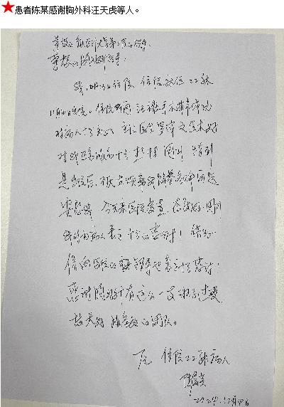 患者陈某的感谢信。
