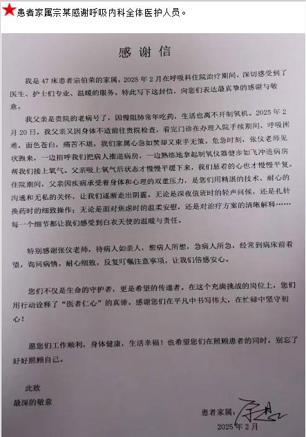 患者家属宗某的感谢信。-感谢信-患者心声-患者服务-重庆医科大学附属第三医院【官方网站】