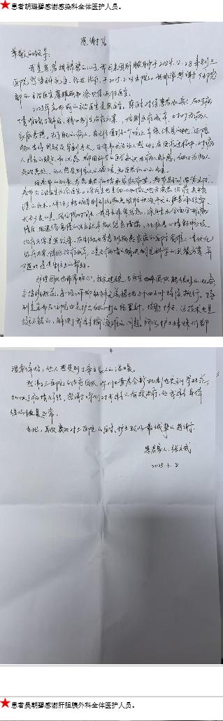 患者胡某的感谢信-感谢信-患者心声-患者服务-重庆医科大学附属第三医院【官方网站】