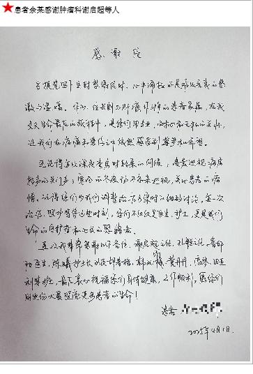 患者余某的感谢信-感谢信-患者心声-患者服务-重庆医科大学附属第三医院【官方网站】