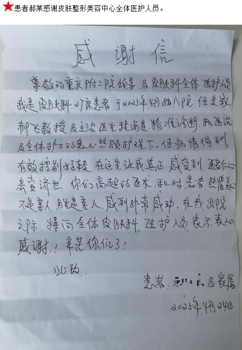 患者郝某的感谢信。-感谢信-患者心声-患者服务-重庆医科大学附属第三医院【官方网站】