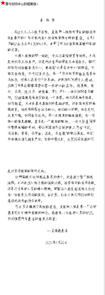 骨与创伤中心收到的感谢信-感谢信-患者心声-患者服务-重庆医科大学附属第三医院【官方网站】