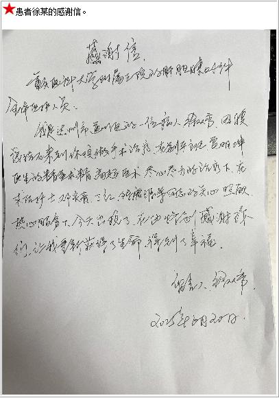 患者徐某得感谢信。