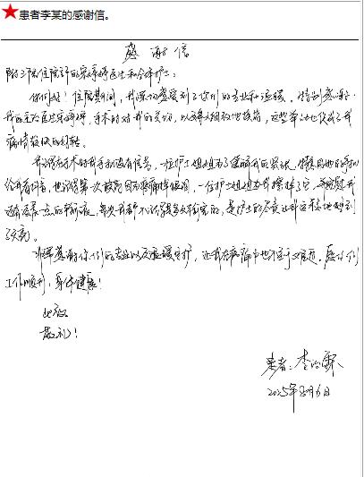 患者李某的感谢信。-感谢信-患者心声-患者服务-重庆医科大学附属第三医院【官方网站】