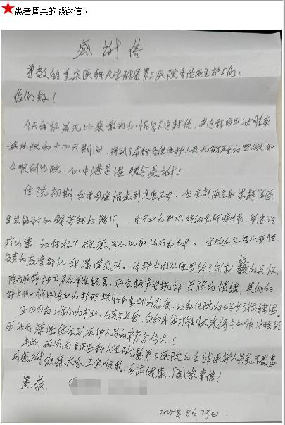 患者周某的感谢信。-感谢信-患者心声-患者服务-重庆医科大学附属第三医院【官方网站】