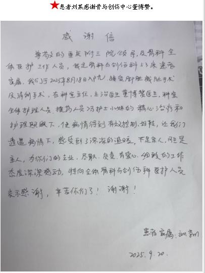 刘某的感谢信。-感谢信-患者心声-患者服务-重庆医科大学附属第三医院【官方网站】