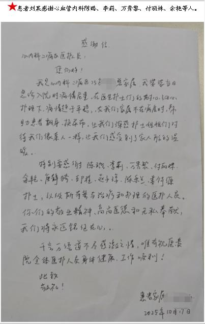患者刘某的感谢信。-感谢信-患者心声-患者服务-重庆医科大学附属第三医院【官方网站】