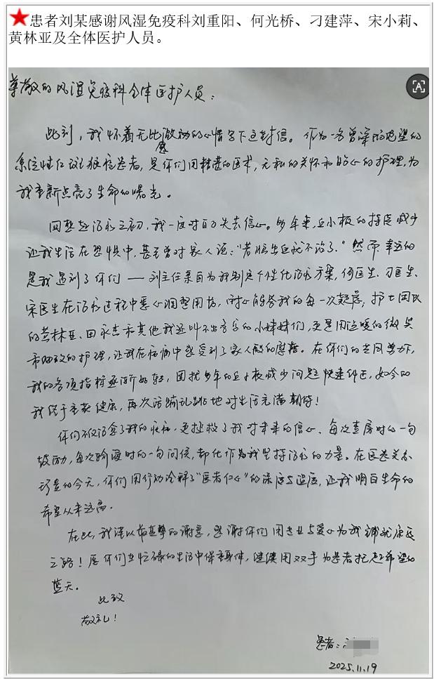 患者刘某的感谢信。-感谢信-患者心声-患者服务-重庆医科大学附属第三医院【官方网站】