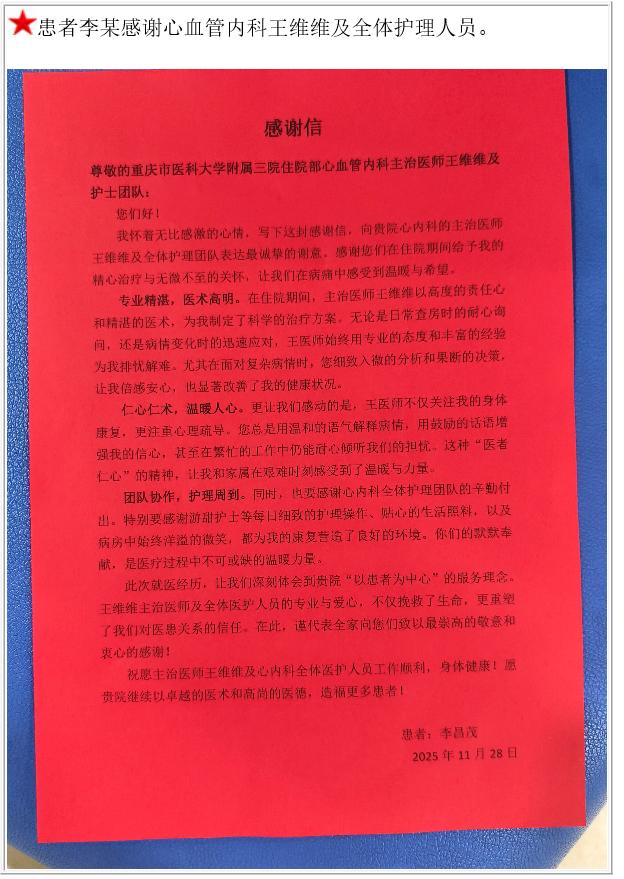 患者李某的感谢信-感谢信-患者心声-患者服务-重庆医科大学附属第三医院【官方网站】