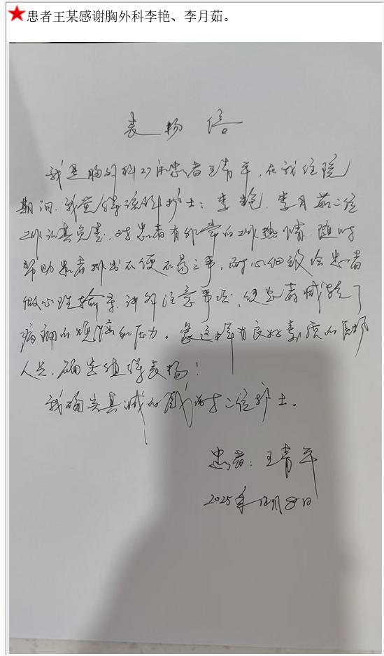 患者王某的感谢信。-感谢信-患者心声-患者服务-重庆医科大学附属第三医院【官方网站】
