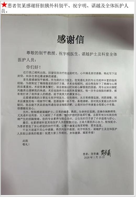 患者贺某的感谢信。-感谢信-患者心声-患者服务-重庆医科大学附属第三医院【官方网站】