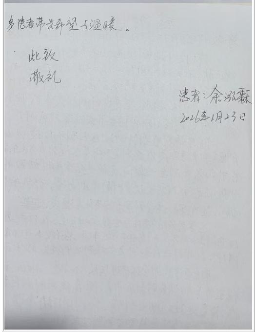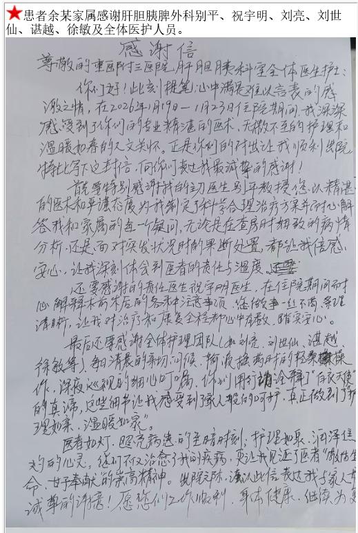 患者余某家属的感谢信。-感谢信-患者心声-患者服务-重庆医科大学附属第三医院【官方网站】