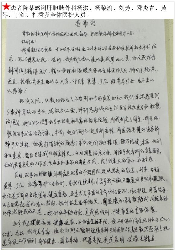 患者陈某的感谢信。-感谢信-患者心声-患者服务-重庆医科大学附属第三医院【官方网站】