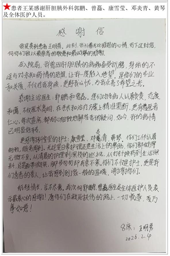 患者王某的感谢信。-感谢信-患者心声-患者服务-重庆医科大学附属第三医院【官方网站】