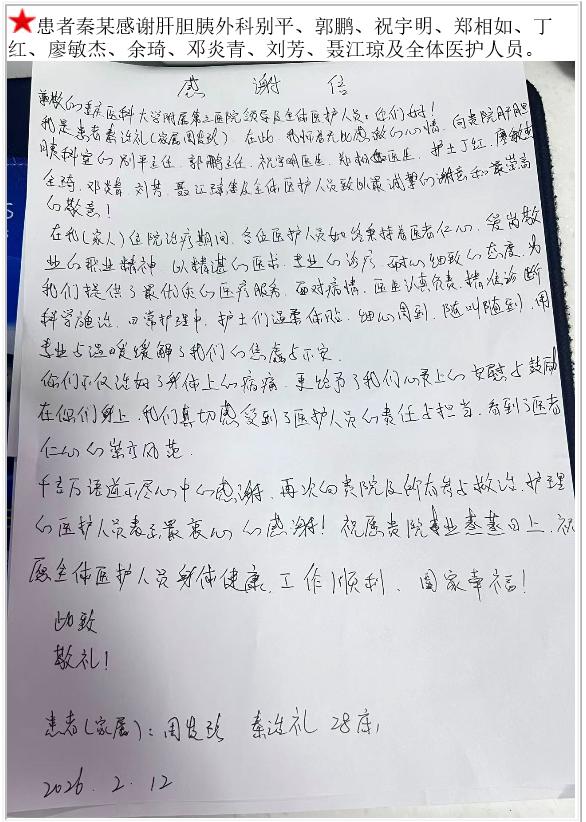 患者秦某的感谢信。-感谢信-患者心声-患者服务-重庆医科大学附属第三医院【官方网站】