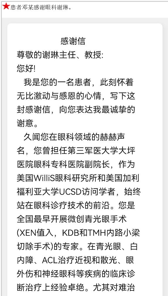 患者邓某的感谢信。-感谢信-患者心声-患者服务-重庆医科大学附属第三医院【官方网站】