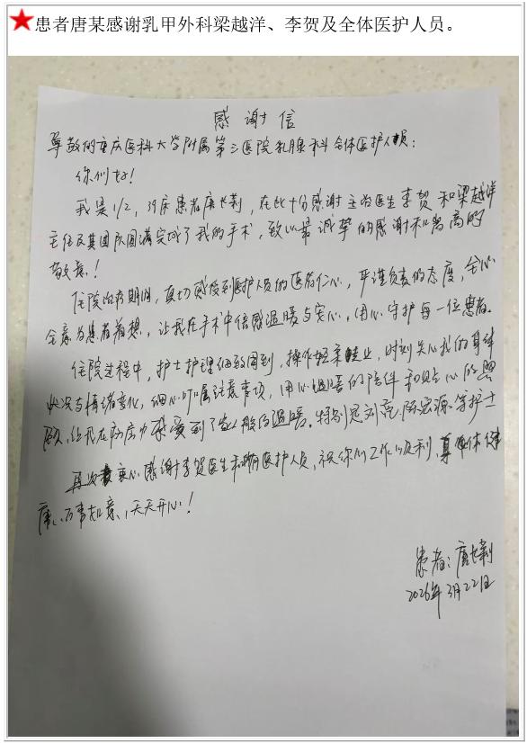 患者唐某的感谢信。-感谢信-患者心声-患者服务-重庆医科大学附属第三医院【官方网站】