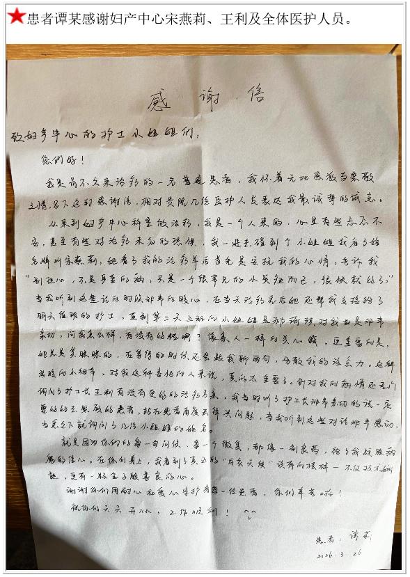 患者谭某的感谢信。-感谢信-患者心声-患者服务-重庆医科大学附属第三医院【官方网站】