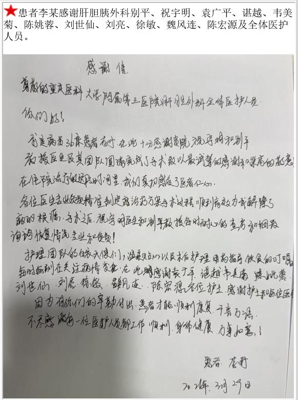 患者李某的感谢信。-感谢信-患者心声-患者服务-重庆医科大学附属第三医院【官方网站】