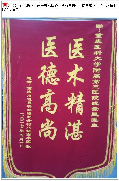 患者谢术莲送来锦旗感谢泌尿疾病中心沈崇星医师-锦旗-患者心声-患者服务-重庆医科大学附属第三医院【官方网站】
