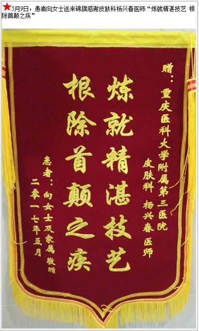 患者向女士送来锦旗感谢皮肤科杨兴春医师-锦旗-患者心声-患者服务-重庆医科大学附属第三医院【官方网站】