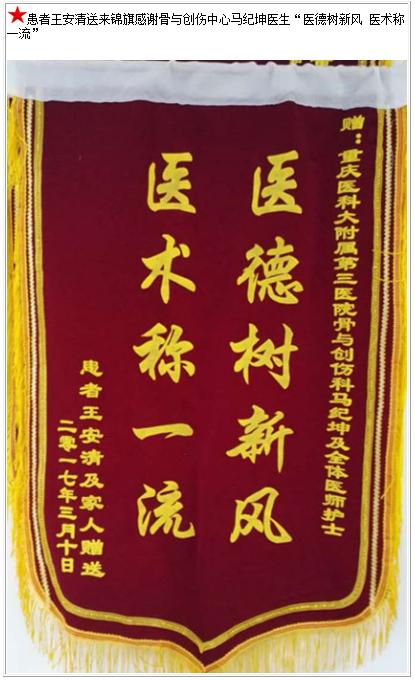 患者王安清送来锦旗感谢骨与创伤中心马纪坤医生-锦旗-患者心声-患者服务-重庆医科大学附属第三医院【官方网站】