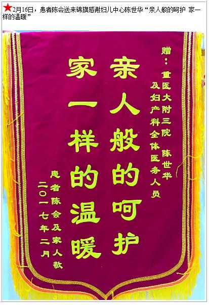 患者陈会送来锦旗感谢妇儿中心陈世华-锦旗-患者心声-患者服务-重庆医科大学附属第三医院【官方网站】