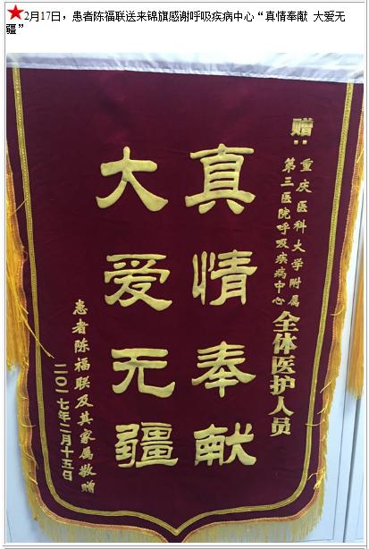 患者陈福联送来锦旗感谢呼吸疾病中心-锦旗-患者心声-患者服务-重庆医科大学附属第三医院【官方网站】