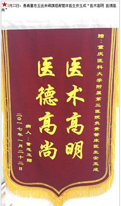 患者董忠玉送来锦旗感谢管床医生安玉成-锦旗-患者心声-患者服务-重庆医科大学附属第三医院【官方网站】