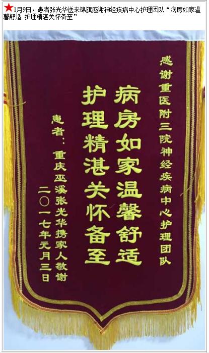 患者张光华送来锦旗感谢神经疾病中心护理团队-锦旗-患者心声-患者服务-重庆医科大学附属第三医院【官方网站】