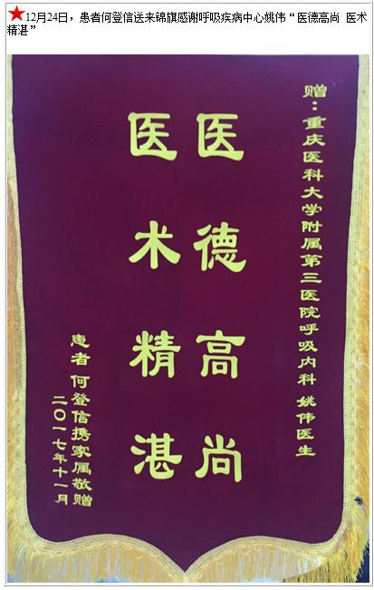 患者何登信送来锦旗感谢呼吸疾病中心姚伟-锦旗-患者心声-患者服务-重庆医科大学附属第三医院【官方网站】