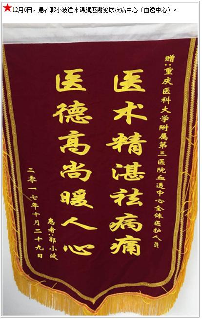 患者郭小波送来锦旗感谢泌尿疾病中心(血透中心)-锦旗-患者心声-患者服务-重庆医科大学附属第三医院【官方网站】