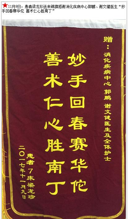 患者梁龙珍送来锦旗感谢消化疾病中心郭鹏、谢文健医生-锦旗-患者心声-患者服务-重庆医科大学附属第三医院【官方网站】
