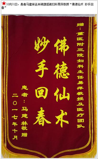 患者马建林送来锦旗感谢妇科易萍教授-锦旗-患者心声-患者服务-重庆医科大学附属第三医院【官方网站】