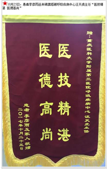 患者李彦雨送来锦旗感谢呼吸疾病中心汪天虎主任-锦旗-患者心声-患者服务-重庆医科大学附属第三医院【官方网站】