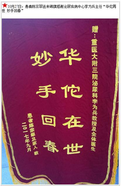 患者陈宗翠送来锦旗感谢泌尿疾病中心李为兵主任-锦旗-患者心声-患者服务-重庆医科大学附属第三医院【官方网站】