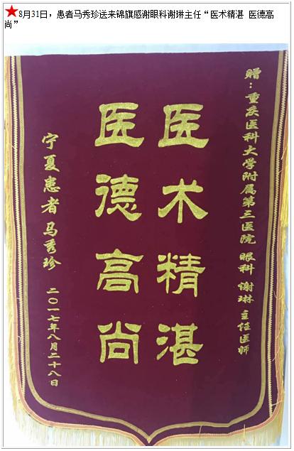 患者马秀珍送来锦旗感谢眼科谢琳主任-锦旗-患者心声-患者服务-重庆医科大学附属第三医院【官方网站】
