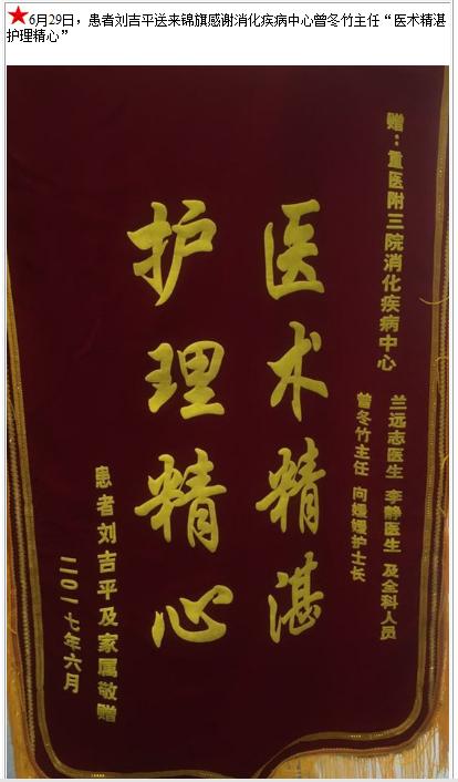 患者刘吉平送来锦旗感谢消化疾病中心曾冬竹主任-锦旗-患者心声-患者服务-重庆医科大学附属第三医院【官方网站】