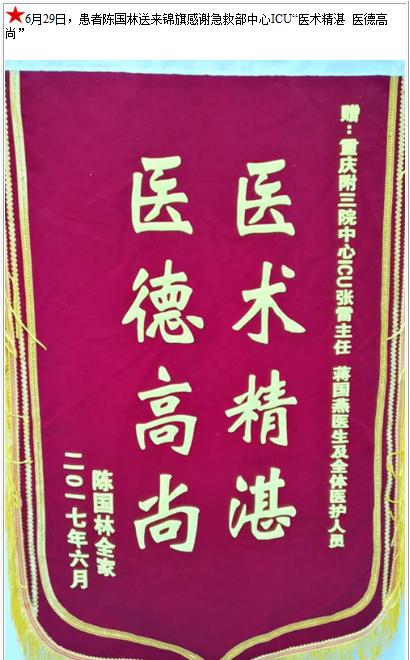 患者陈国林送来锦旗感谢急救部中心ICU-锦旗-患者心声-患者服务-重庆医科大学附属第三医院【官方网站】