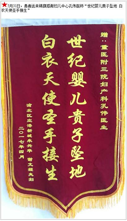 患者朱兴华送来锦旗感谢妇儿中心孔伟医师-锦旗-患者心声-患者服务-重庆医科大学附属第三医院【官方网站】